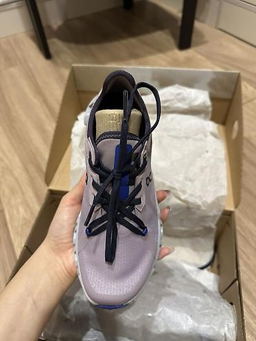 - Цвет: лилово‑сиреневый верх с темно‑синими акцентами и светло‑серой подошвой; контрастная бежево‑песочная язычковая вставка.