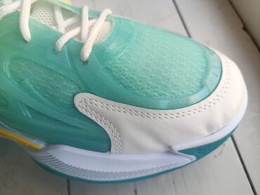 - Детали дизайна: глянцевые TPU-панели по бокам, декоративные жёлтые элементы на мидсоли, контрастная окантовка.