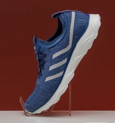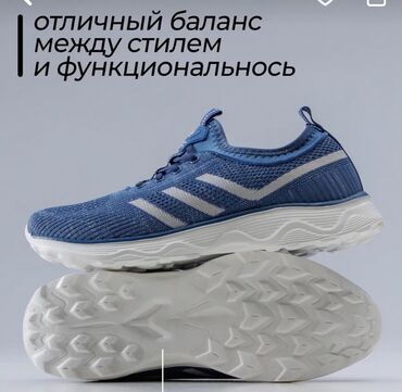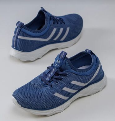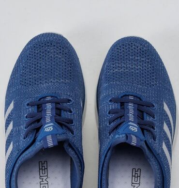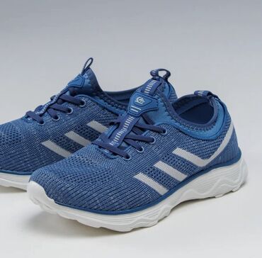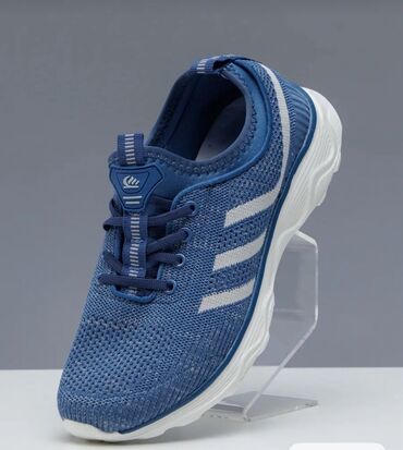 Спортивные кроссовки синего цвета, разработанные для активного образа жизни, сочетают в себе комфорт и функциональность. Верх кроссовок выполнен из дышащего сетчатого материала, обеспечивающего хорошую вентиляцию стопы. Подошва белого цвета с рельефным рисунком обеспечивает надежное сцепление с поверхностью и амортизацию. Сбоку расположены декоративные полосы серебристого цвета, добавляющие динамичности дизайну. Удобная шнуровка позволяет регулировать плотность посадки. Эти кроссовки идеально подходят для бега, тренировок в зале или повседневной носки.