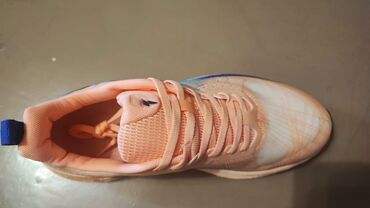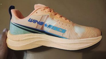 Беговые кроссовки персикового цвета с динамичным дизайном и контрастными вставками синего и бирюзового оттенков. Модель "Wing Rises" (Крылья поднимаются) имеет легкую конструкцию с дышащим верхом для комфортной вентиляции во время активности. Амортизирующая подошва обеспечивает поддержку и поглощение ударов, делая эти кроссовки подходящими как для повседневных пробежек, так и для интенсивных тренировок. Удобная шнуровка и мягкий язычок гарантируют надежную фиксацию стопы. Идеальный выбор для спортсменов, ценящих комфорт и стиль. Размер стельки 27см