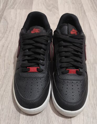 - Шнуровка с фирменным дубрэ «AF1 • 82» красного цвета
