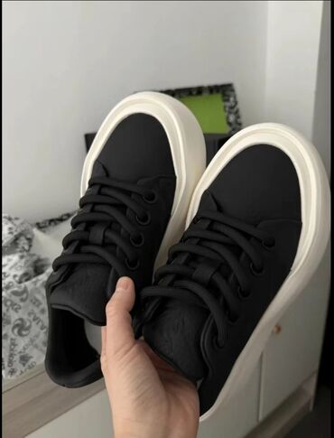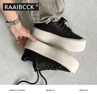 - Дизайн: минималистичные низкие кеды с округлым носком, матовая фактурная поверхность верха, тон в тон шнурки и люверсы