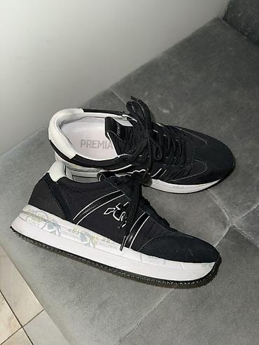 Кроссовки Premiata Размер: 38 (EU) Заказывала себе, но, к сожалению, размер не подошёл. Описание: - Цвет: серый с металлическим отливом, черные детали и шнурки, белая подошва с фирменным принтом...