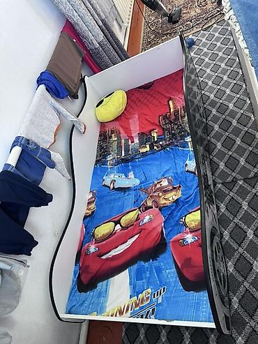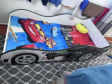 - Дизайн в виде спортивного авто: боковины с принтами колес, наклейками Monster/TopCar, волнообразные бортики.