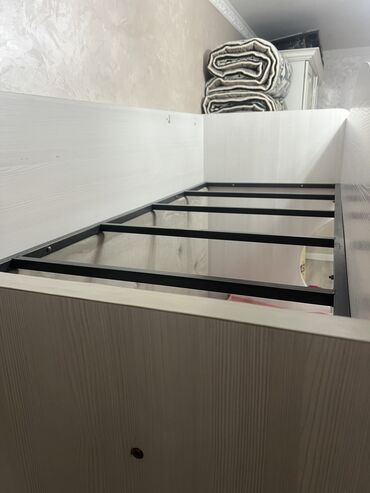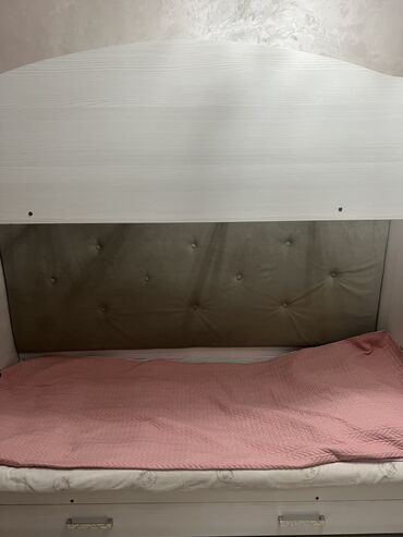 Двухъярусная кровать белого цвета с вертикальной лестницей и ящиками для хранения. Эта функциональная кровать подходит для детских комнат, эффективно используя пространство за счет двух спальных ме...