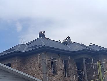 - Сопровождение от замера до сдачи: замер, подбор материалов, раскрой карт, доставка и подъём на кровлю.