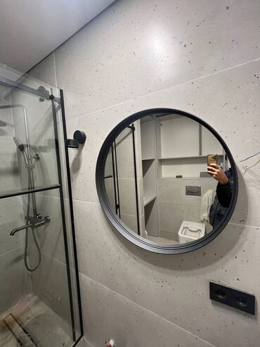 Круглое зеркальное полотно с матово‑черной рамкой - Форма: круг. -