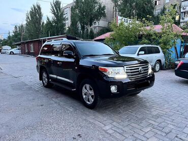 Toyota Land Cruiser 200, черный кузов, внедорожник. Основные особенности: - Мощный полноразмерный SUV с высокой посадкой и защитным дефлектором капота - Черные легкосплавные диски, внедорожные шин...