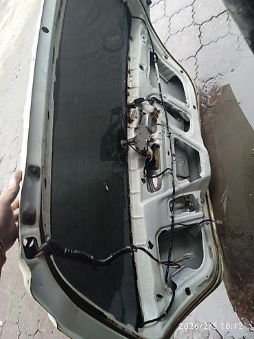 Габариты и форма подходят для кузова с вертикальной задней дверью; на фото показаны внешняя сторона, стекло и внутренняя панель с проводкой и механизмами. Ржавчина по кромкам и следы эксплуатации видны на снимках.