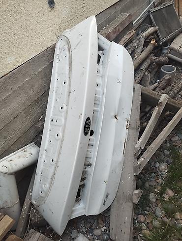 Крышка багажника для Kia (седан/хэтчбек; белый цвет). Оригинальная деталь с заводским местом под эмблему KIA и креплениями под номерной знак и подсветку. Металл, без навесного: нет замка/личинки, петель, проводки, кнопки, молдингов и фонарей подсветки номера. Подходит для восстановления/перекраски.
