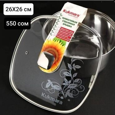 Квадратная стеклянная крышка Kukmara размером 26x26 см-550 сом.