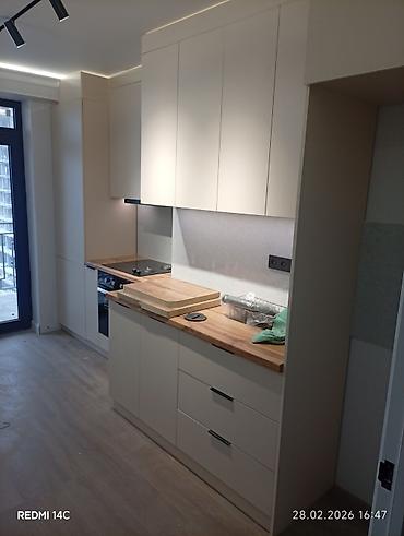 - Прямые гарнитуры в современном минималистичном стиле: гладкие фасады без фрезеровки, скрытая/интегрированная фурнитура, продуманная эргономика.