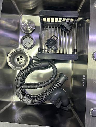 - Чаша-сетка для улавливания мусора, заглушки для неиспользуемых отверстий.