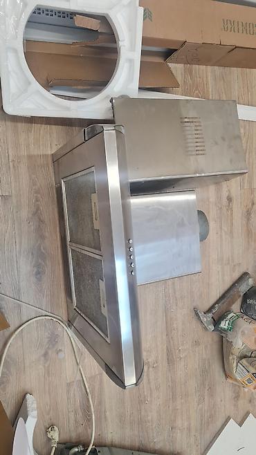 В комплекте: основной блок с мотором и патрубком, декоративный короб/кожух, алюминиевые фильтры. Подходит для стандартной кухни, эффективно удаляет запахи, пар и жир во время готовки.