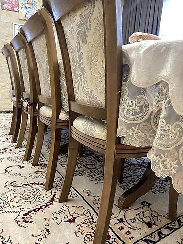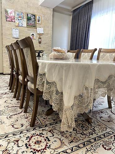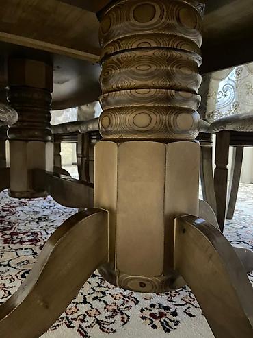 Обеденный стол из карагача, в комплекте 12шт стульев. Состояние очень хорошее. размер длина 2,50см, ширина 80см