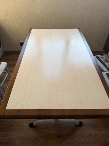 Стол для кухни и зала , состояние отличное 10 из 10. длина 1.5м ширина 90см. Ножки отличные, закрывали чтобы ребёнок не ударялся.