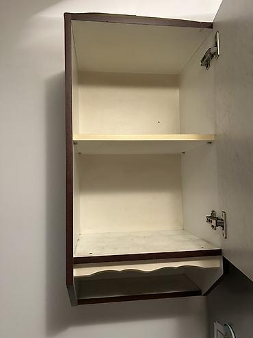 - Верхние шкафы: блок из 4 секций + угловой модуль с витринами (стекло с решёткой), а также отдельный навесной шкаф одной дверцы.