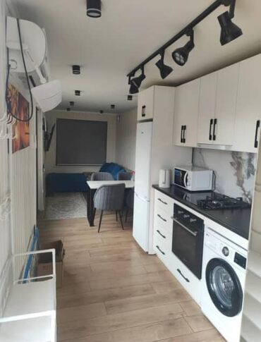 Готовое решение «заезжай и живи» функциональная кухня с бытовой техникой, обеденная зона и уютная гостиная в едином пространстве, современное освещение и климат-контроль