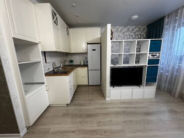 Пишпек Сдается студия с евроремонтом и отоплением. Частично меблирована. Описание: - Просторная студия в светлых тонах, потолочные точечные светильники - Ламинат по всей квартире, большие окна с ...