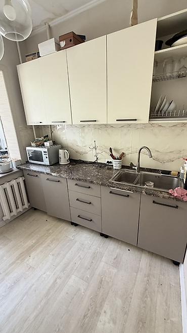Подходит для компактной кухни: достаточно места для микроволновки, чайника и аксессуаров, удобная зона мойки и хранения, нейтральные цвета легко сочетаются с разным интерьером.