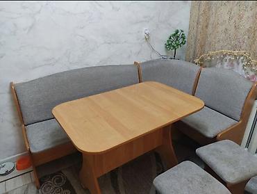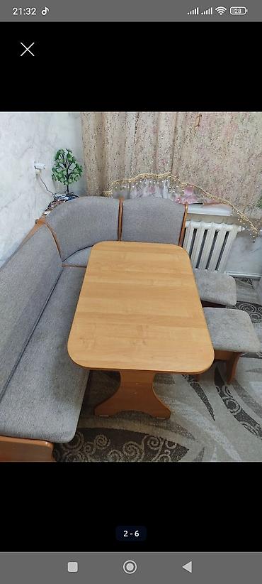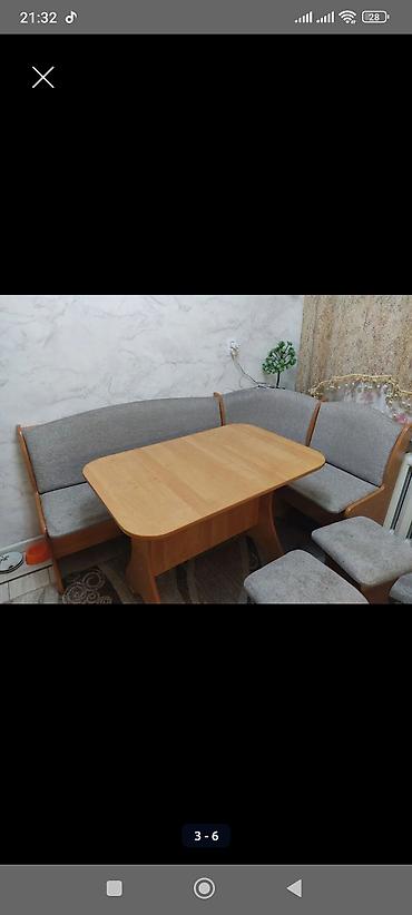 КУХОННЫЙ УГОЛОК!!! с мягкой обивкой и декоративными элементами в национальном стиле, дополненный мраморным столом и пятью табуретами. Комплект создает уютную обеденную зону, подходящую для семейны...