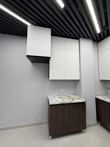 - Шкафы: набор навесных модулей повышенной высоты для максимального хранения; отдельный верхний короб под вытяжку.