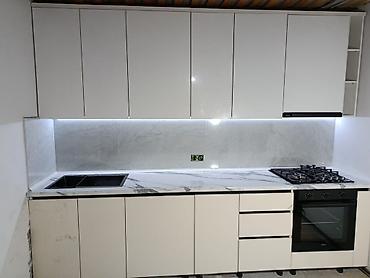 Кухонный гарнитур в современном стиле, линейная планировка.