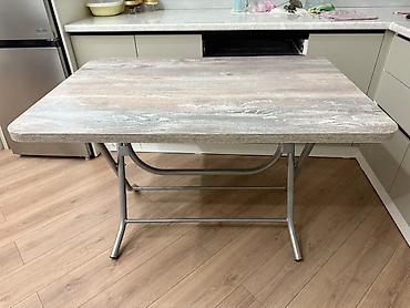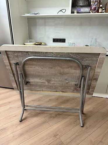 - Стол раскладной/трансформируемый с откидной столешницей. Механизм поворота/складывания позволяет убирать столешницу вертикально для компактного хранения.