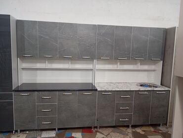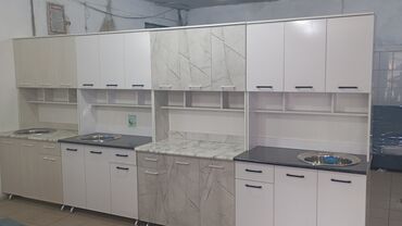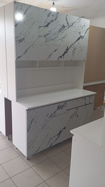 Многофункциональный кухонный гарнитур в современном стиле, идеально подходящий для обустройства кухни. Включает верхние и нижние секции, обеспечивающие достаточно места для хранения посуды и кухонной утвари. Верхние шкафы выполнены в белом цвете, а нижние секции и боковые панели имитируют натуральное дерево, что придает гарнитуру уютный и стильный вид. Столешница выполнена под мрамор, добавляя элегантности. Возможны различные конфигурации и цветовые решения, что позволяет адаптировать гарнитур под любой интерьер.