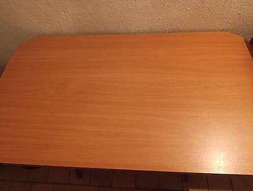 - Прямоугольный стол из ЛДСП с закруглёнными углами. Цвет — светлый бук/вишня (теплый древесный тон). Толщина столешницы визуально около 16–18 мм. Опоры фигурные, с поперечиной для жёсткости. Подходит для кухни, дачи, небольшой столовой или как рабочий стол.
