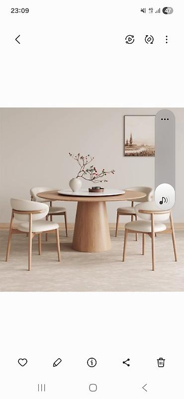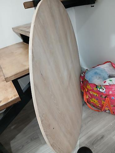 - Столешница круглая из массива (срощенный щит), диаметр ориентировочно 110–130 см.
