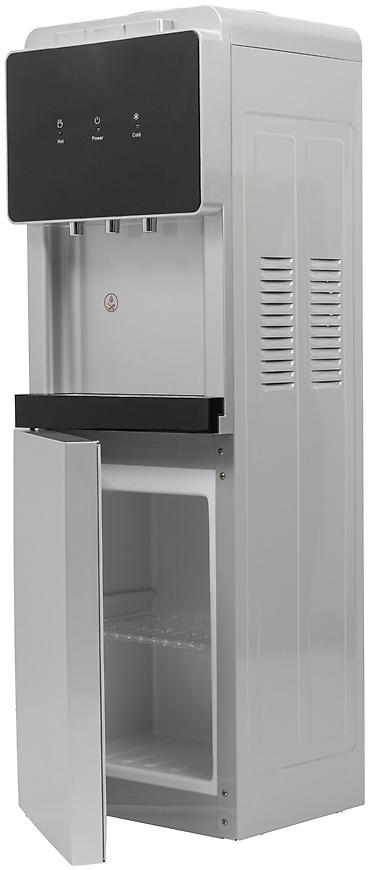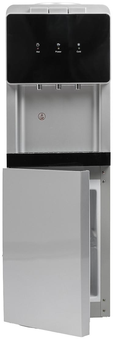 Кулер для воды напольный - Тип: напольный диспенсер с нижним шкафчиком - Загрузка бутыли: верхняя (штырь-приемник на крышке) - Функции: подача холодной и горячей воды (панель с индикаторами нагре...