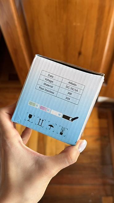 - В комплекте: основной блок-помпа, силиконовая всасывающая трубка, изогнутый металлический носик, USB-кабель (на изображениях), документация.