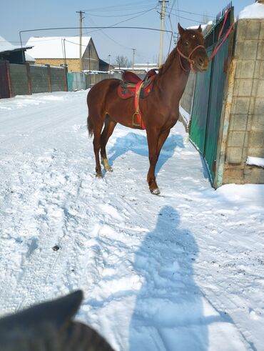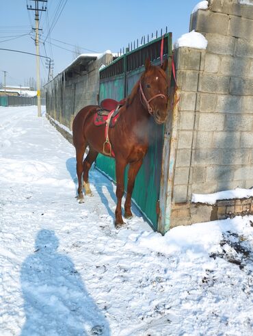 Ат сатылат Жазга 4 жаш Бою 165см Лошадь верховая, гнедой масти, крупного роста и крепкого телосложения. Под седлом спокойна, управляется поводом, подходит для прогулок полями и по лесным тропам. ...