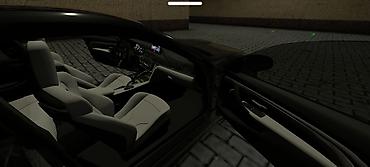 - Салон спортивные передние кресла с выраженной боковой поддержкой, светлая кожаная обивка, контрастные тёмные вставки.