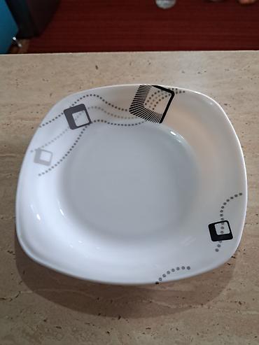 Круглое фарфоровое блюдо. Основная часть тарелки выполнена в светлых