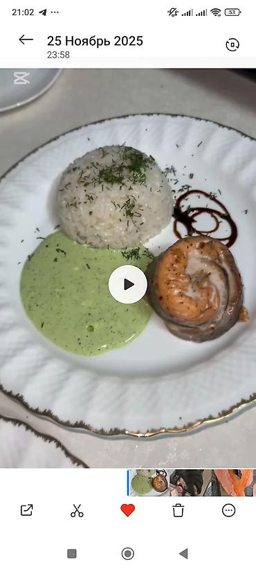 - Готовить и красиво оформлять блюда для выездных мероприятий, банкетов и кухни на потоке.