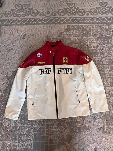 - Крупная вышивка/принт с жеребцом на спине, надпись Ferrari на спине и спереди; фирменные шевроны на плечах.
