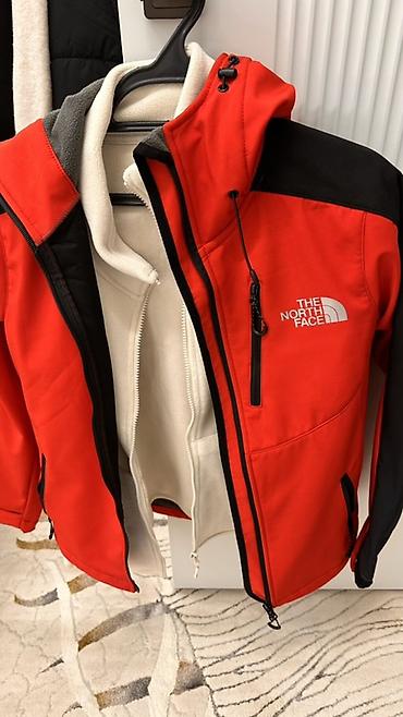 Куртка The North Face Softshell красная, с черными вставками.