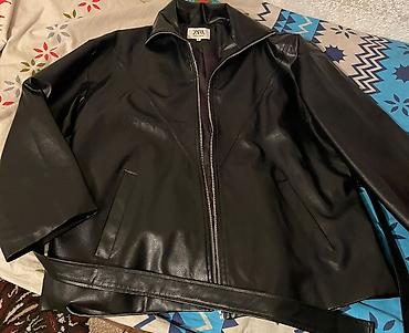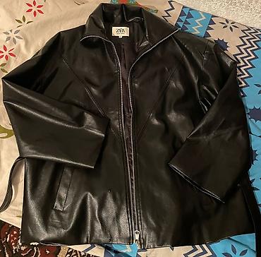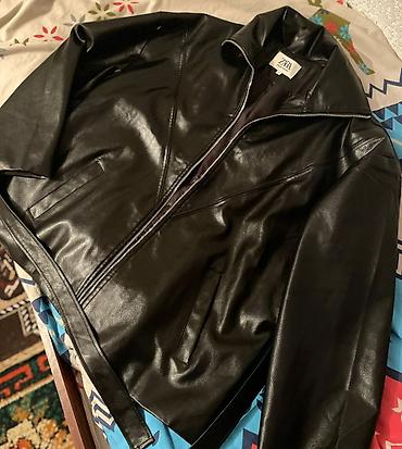 Куртка ZARA, женская, из чёрной эко‑кожи.