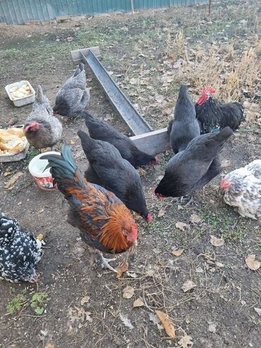 - Птица мясо‑яичного направления, крупные петухи, крепкие куры.