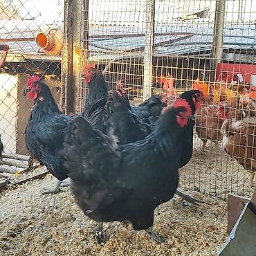 Черные джерси гигант домашние куры (мясо‑яичное направление) и свежие куриные яйца. Описание: - Порода/Джерси гигант черные куры с зеленоватым отливом пера; мощные петухи и несушки. - Назначение: ...