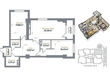 3 комнаты, 94 м², Элитка, ПСО (под самоотделку)