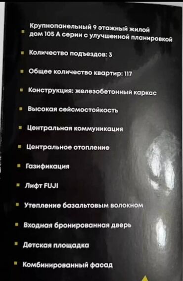 Продаётся 2 ком под ПСО квартира (можно под 3 ком сделать: 2 спальных и зал студия) Застройщик: «Рич Таун» Район: ТЦ Таатан Этаж: 3/9 Квадратура: 72 м2 Отопление: центральное Документы: ДДУ через ...