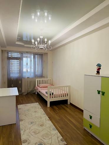 Представляем квартиру с продуманным дизайном, включающую спальню с двуспальной кроватью, прикроватными тумбами и вместительным шкафом-купе с зеркальными дверцами. Детская комната оборудована односпальной кроватью, рабочим столом и шкафом с яркими зелеными дверцами, украшенными декоративными бабочками. Ванная комната сочетает белый и черный кафель, оснащена современной сантехникой, включая умывальник с тумбой и душевую кабину. В квартире есть все необходимое для комфортного проживания.