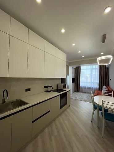 Просторная и современная квартира с полностью оборудованной кухней, уютной спальней и функциональной ванной комнатой. Кухня оснащена встроенной техникой, включая микроволновую печь и варочную панель, а также обеденной зоной. В спальне расположена двуспальная кровать с прикроватными тумбочками и вместительный шкаф. Ванная комната оборудована стиральной машиной и водонагревателем. Интерьер выполнен в светлых тонах с акцентами из темного дерева и серого камня, что создает стильное и комфортное пространство. Идеально подходит для комфортного проживания.
