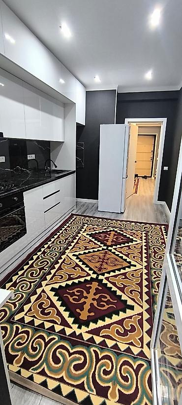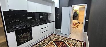- Мебель и техника остаются: мягкий гарнитур в гостиной, кровать и комод в спальне, кухонная техника (варочная панель, духовой шкаф, вытяжка, холодильник), навесная ТВ‑тумба.