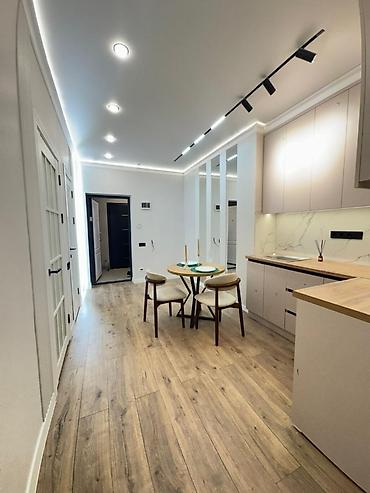 - Полы под дерево, светлые стены, лаконичный современный дизайн.
