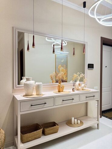Уютная квартира с современным ремонтом. Спальня обставлена двуспальной кроватью с мягким изголовьем и прикроватными тумбочками. Стильная люстра обеспечивает приятное освещение. Кухня оборудована светлой мебелью с деревянными элементами, встроенной техникой, включая холодильник и микроволновую печь. Обеденная зона дополнена круглым столом и удобным стулом. В ванной комнате установлена ванна с душевой лейкой и современный унитаз.