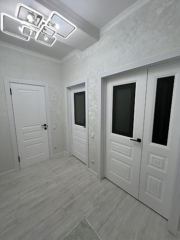 - Двери: новые белые филёнчатые полотна с матовыми стеклянными вставками и современной фурнитурой.
